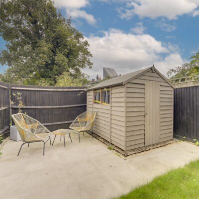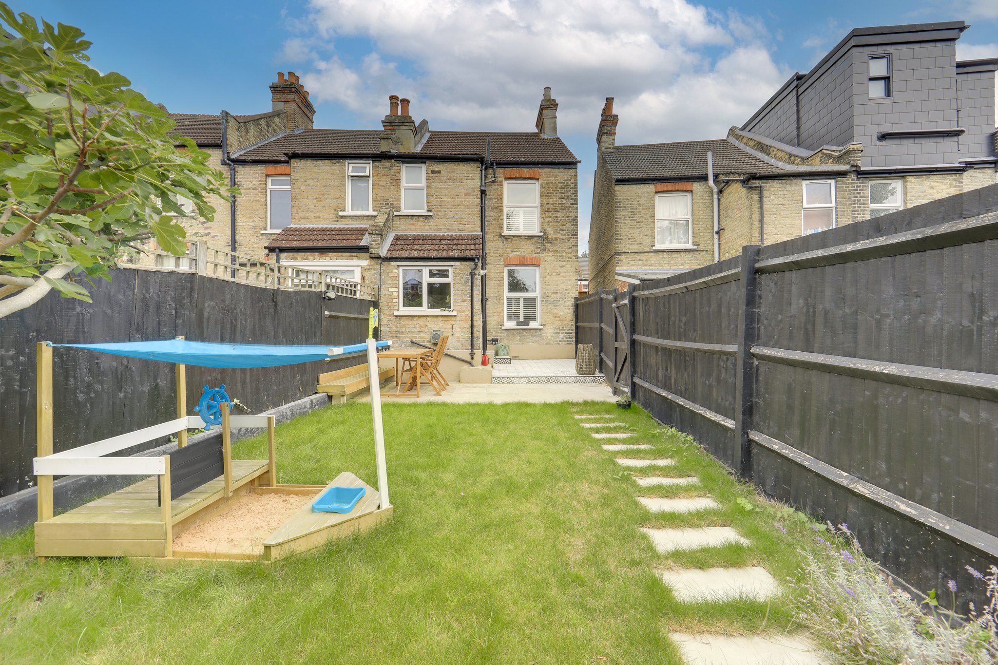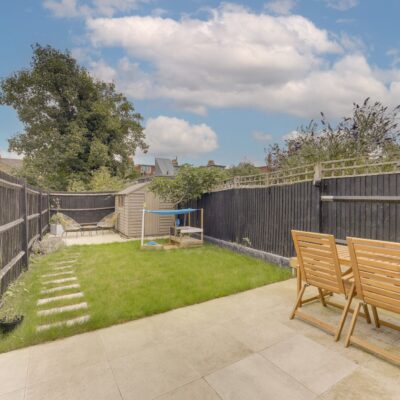 The ground floor features a bright double reception room with bay windows and a period fireplace, leading to a well-equipped modern kitchen overlooking a lovingly maintained garden. With front and rear patios, a lawn, and side access, the garden is perfect for alfresco dining, play, and relaxation.