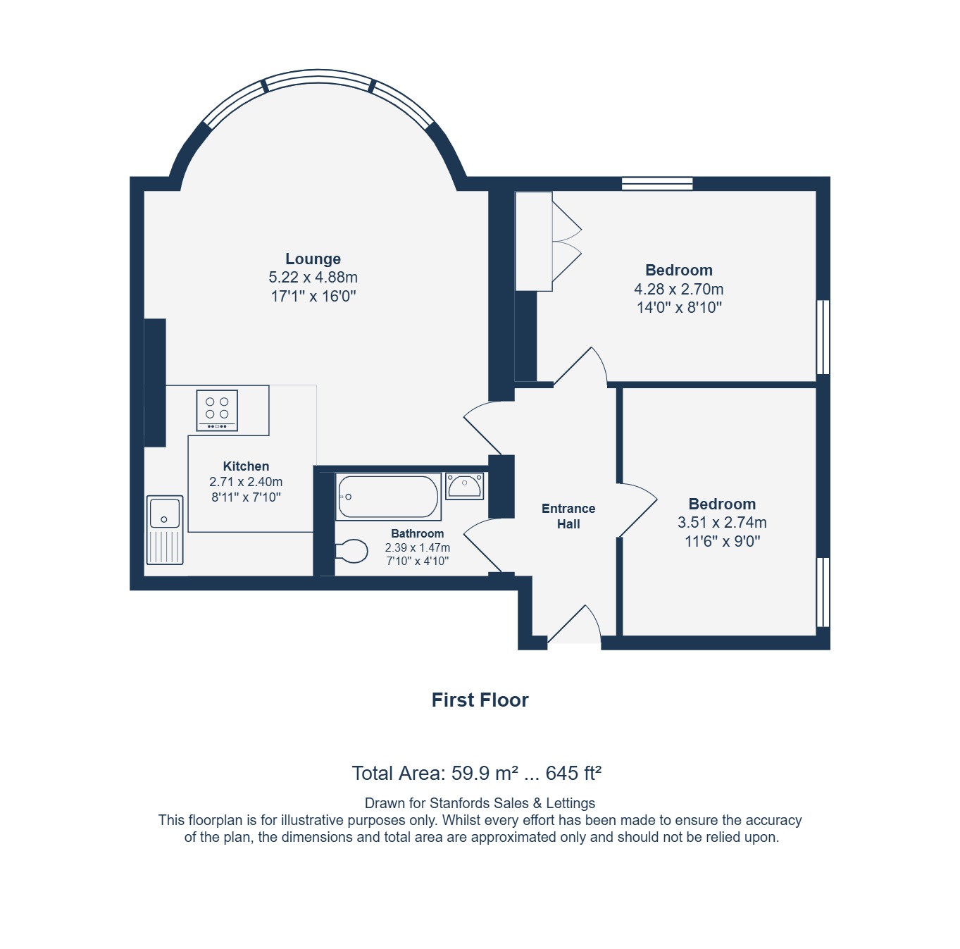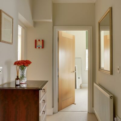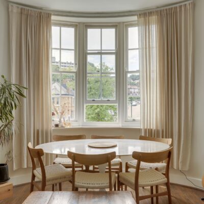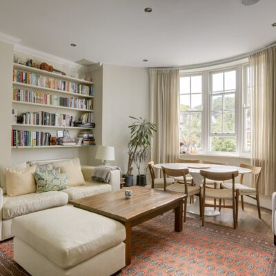 Stepping inside, the welcoming entrance hall opens into a generous open-plan living space, featuring elegant sash bay windows, high ceilings, and ample room for both dining and relaxing. The contemporary kitchen is sleek and well-designed, complementing the room’s bright and airy feel. Both bedrooms are spacious doubles, while the modern bathroom offers a calm and stylish retreat.