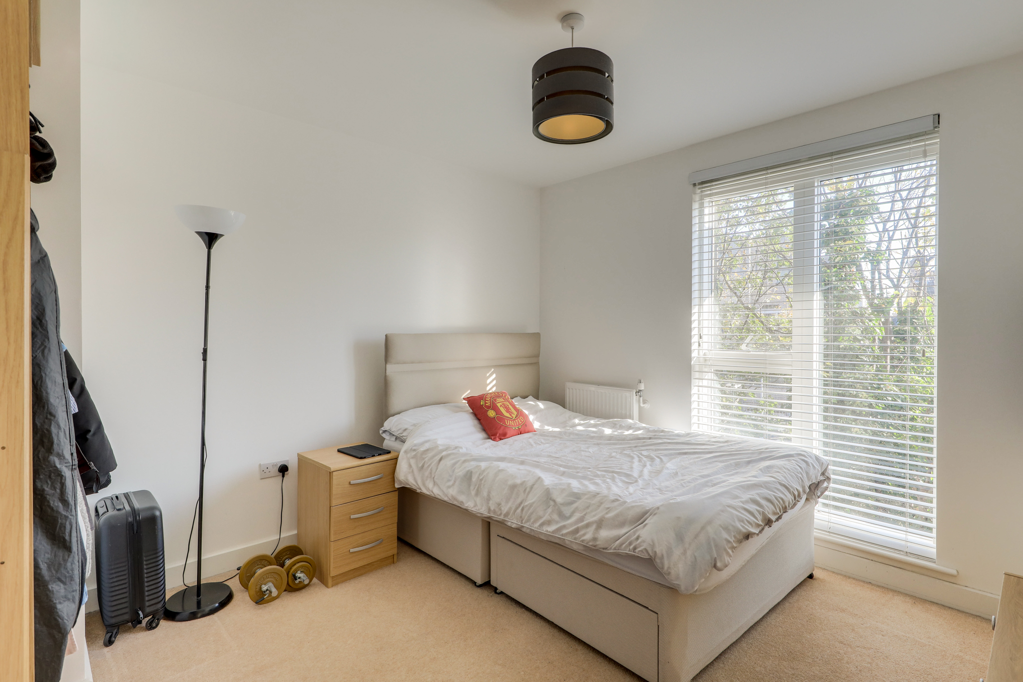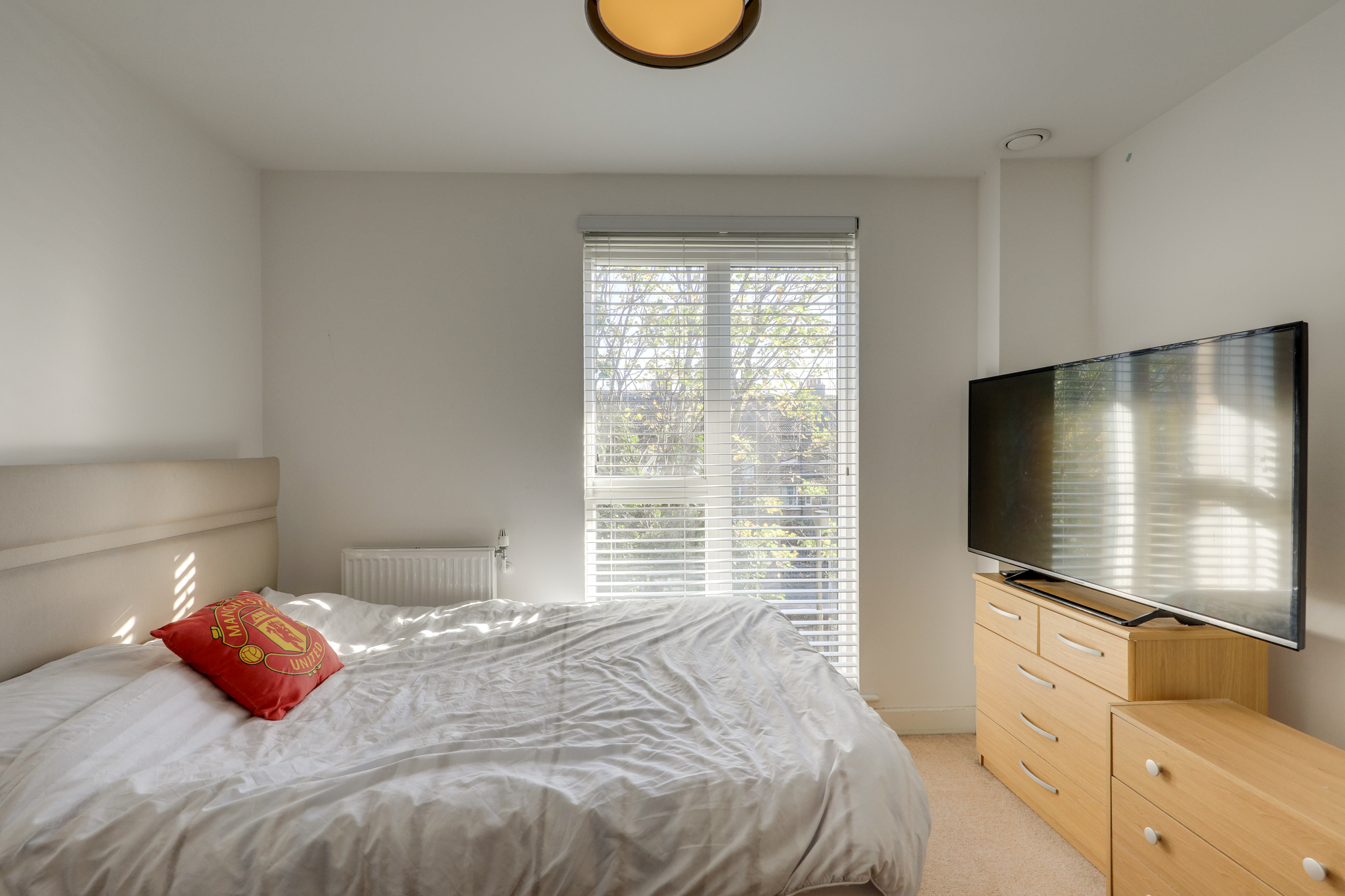 Double-glazed window, pendant ceiling light, radiator, fitted carpet.