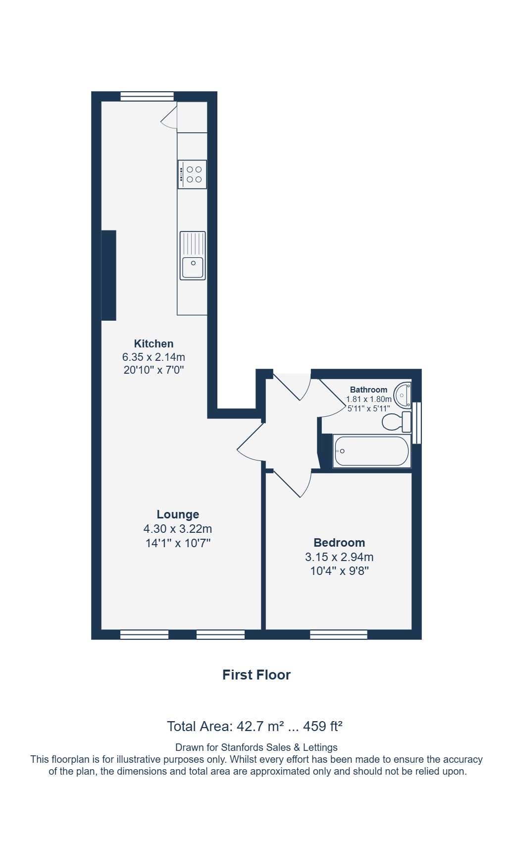 - Total Area: 459sqft.
