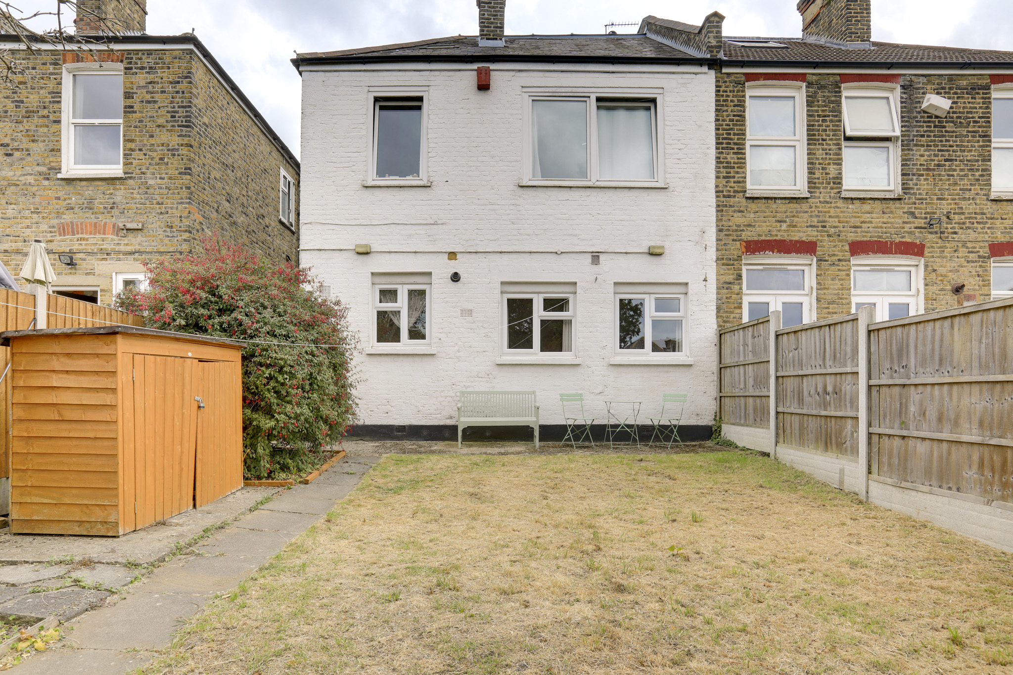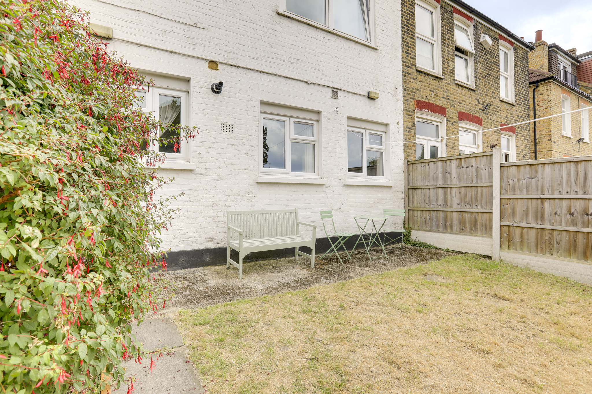 Inside, a light-filled entrance hall leads to a generous reception room with large bay windows that flood the space with natural light. This room offers ample space for both relaxing and dining. Further down the hall, you'll find a spacious double bedroom, a modern bathroom, and a kitchen that provides direct access to the private rear garden plus a separate side gate for easy access. This generous outdoor space is an ideal spot for entertaining or simply enjoying a peaceful moment.