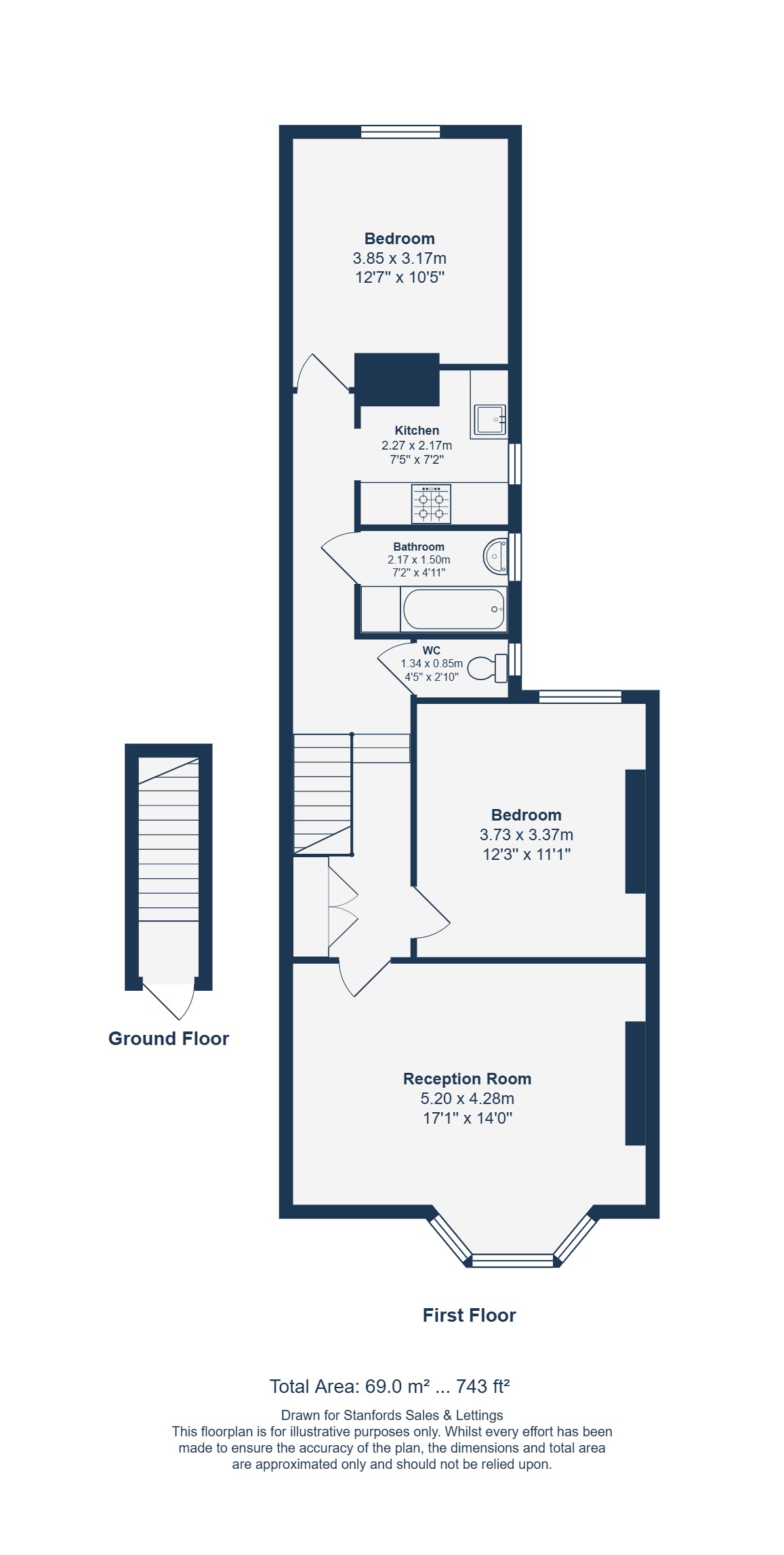 Set on the first floor of a well-maintained period conversion, the property perfectly combines period charm with modern convenience. The spacious reception room to the front features a large bay window and a character fireplace, creating a welcoming space to relax or entertain. Along the hall, there is a well-appointed kitchen, a modern bathroom with a separate WC, and two generously sized double bedrooms.