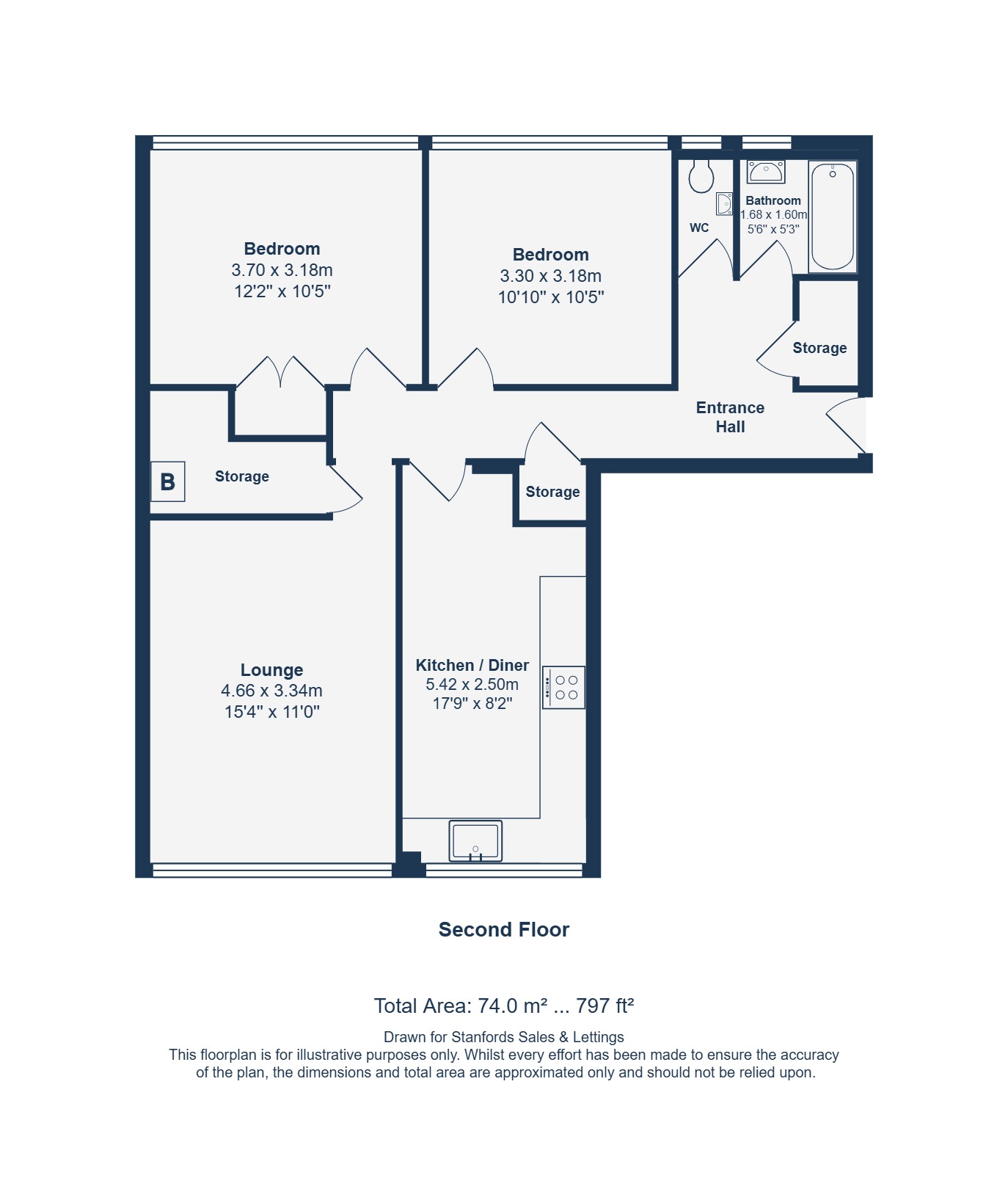 Inside, the flat features a welcoming living area and a functional kitchen, with plenty of scope to update or add personal touches over time. Both bedrooms are sensibly sized and easy to furnish, while the bathroom is neatly arranged and well suited to everyday use.