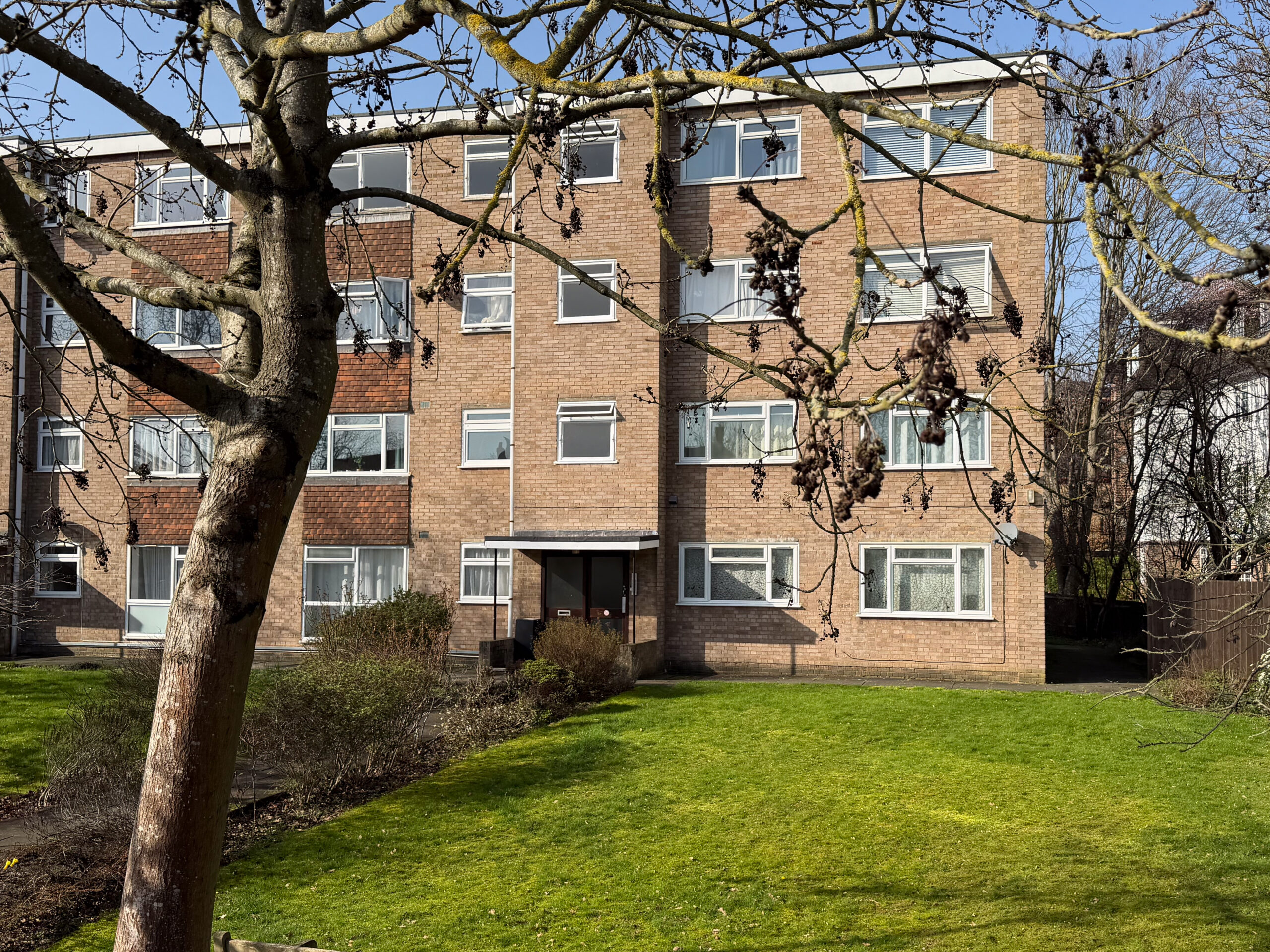 Inside, a generous entrance hall leads to a bright reception room and a contemporary fitted kitchen. Both bedrooms are well-proportioned doubles, with the principal bedroom benefiting from large fitted wardrobes. A modern bathroom and ample built-in storage complete the interior. Residents also enjoy access to well-maintained communal gardens.