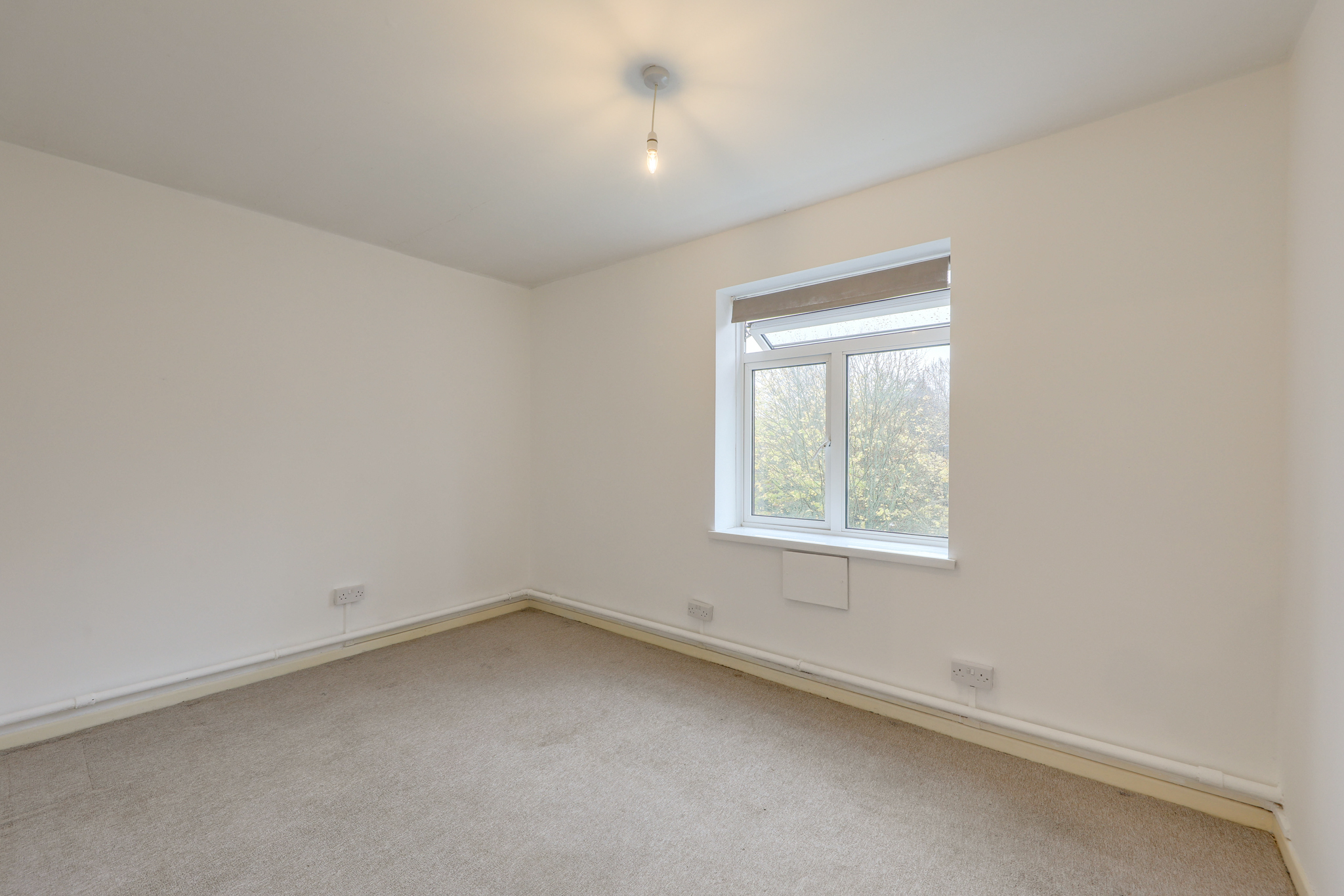 Double-glazed window, pendant ceiling light, fitted carpet.