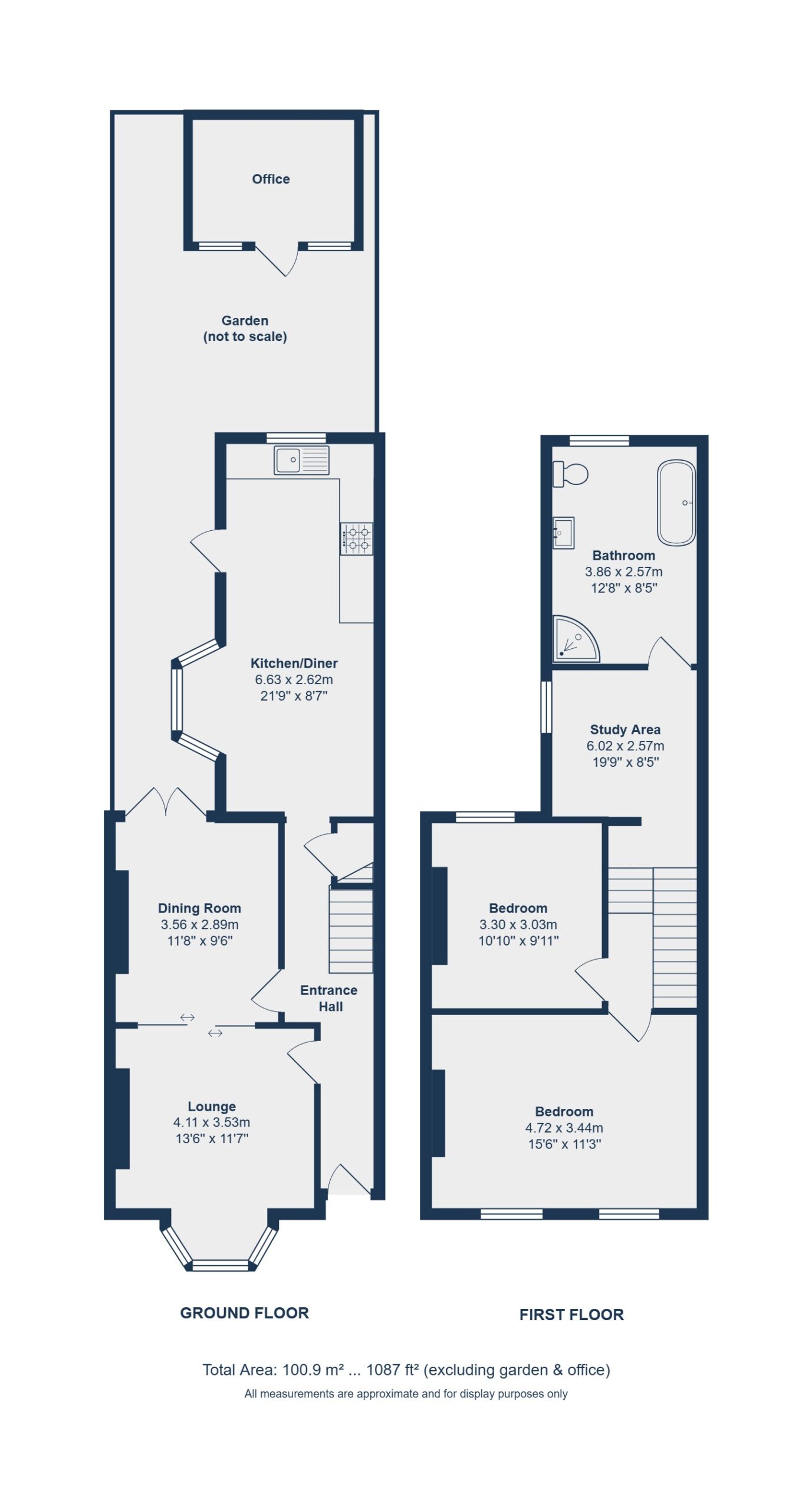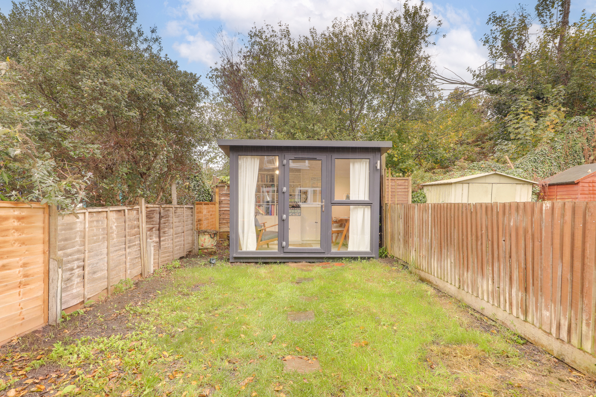 On the ground floor, the layout flows naturally from a welcoming lounge at the front to a separate dining room—ideal for family meals or entertaining. The kitchen/diner sits at the rear, offering plenty of space for cooking and casual dining, with direct access to the garden. Each room feels bright and well-proportioned, with the neutral décor providing a great base for personal touches and future updates. Upstairs, you’ll find two comfortable bedrooms, a dedicated office space, and a well-appointed family bathroom. The office provides a quiet and practical area for working from home. Easily obtainable planning permission for the loft if wanted