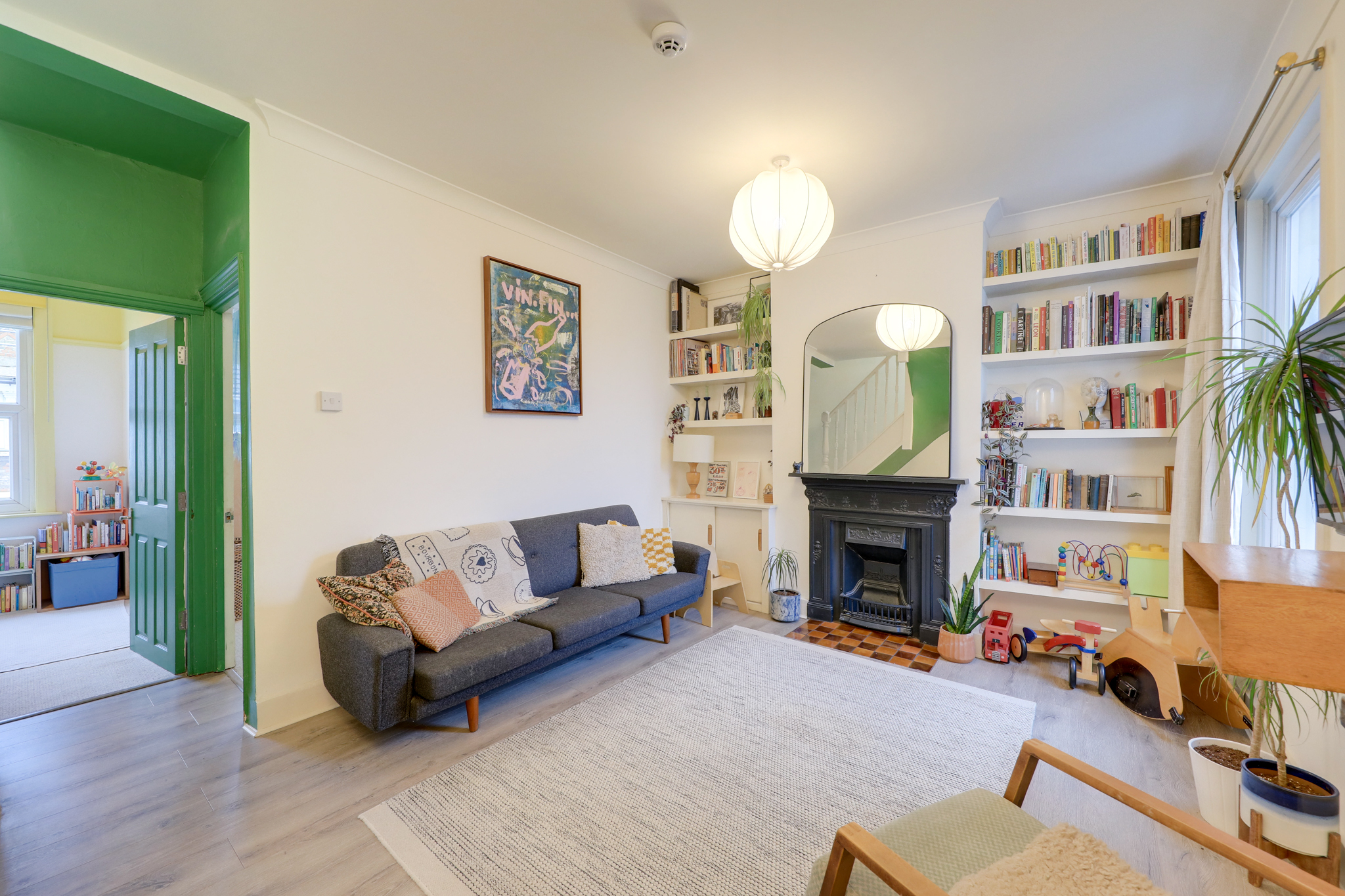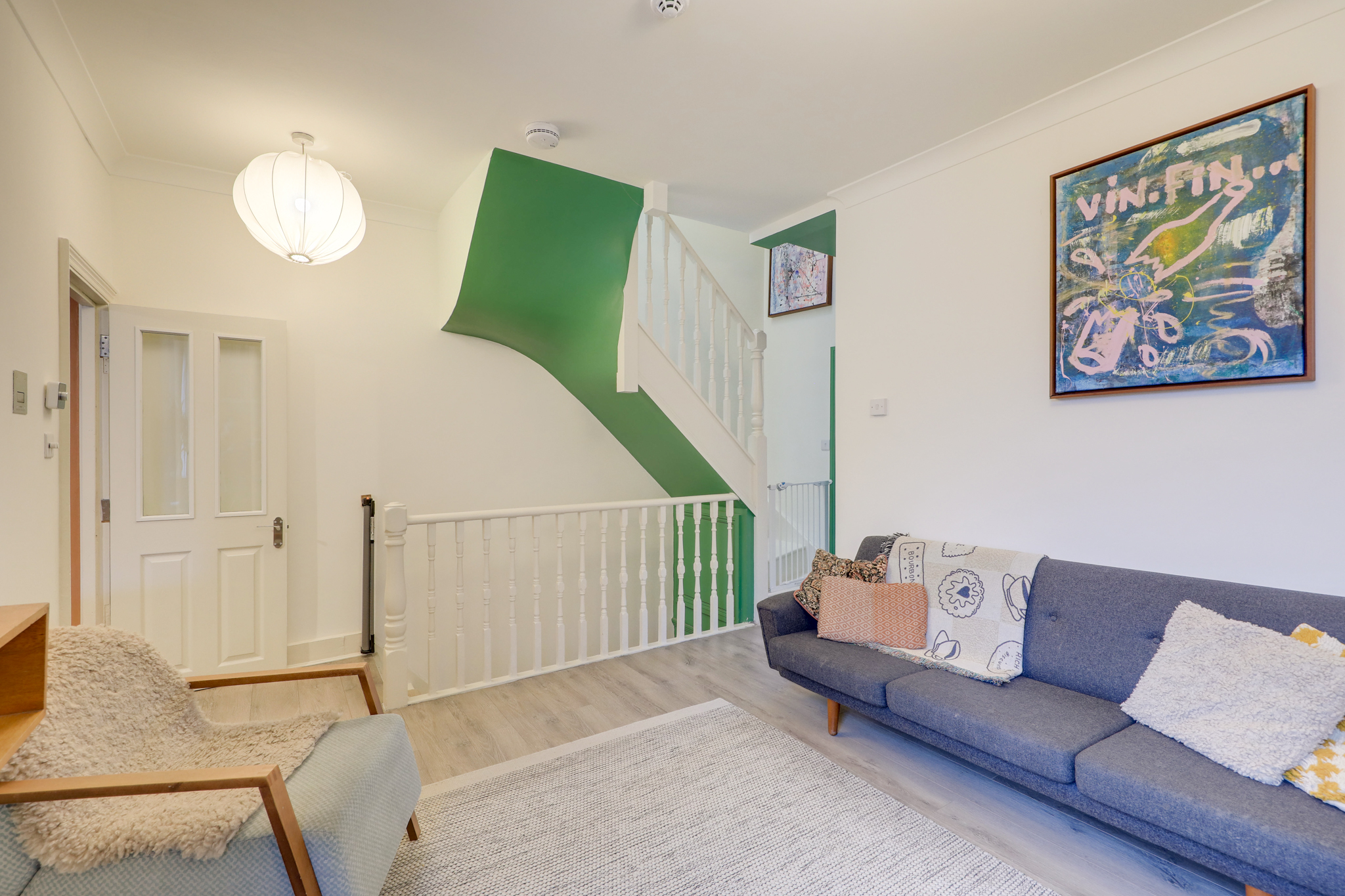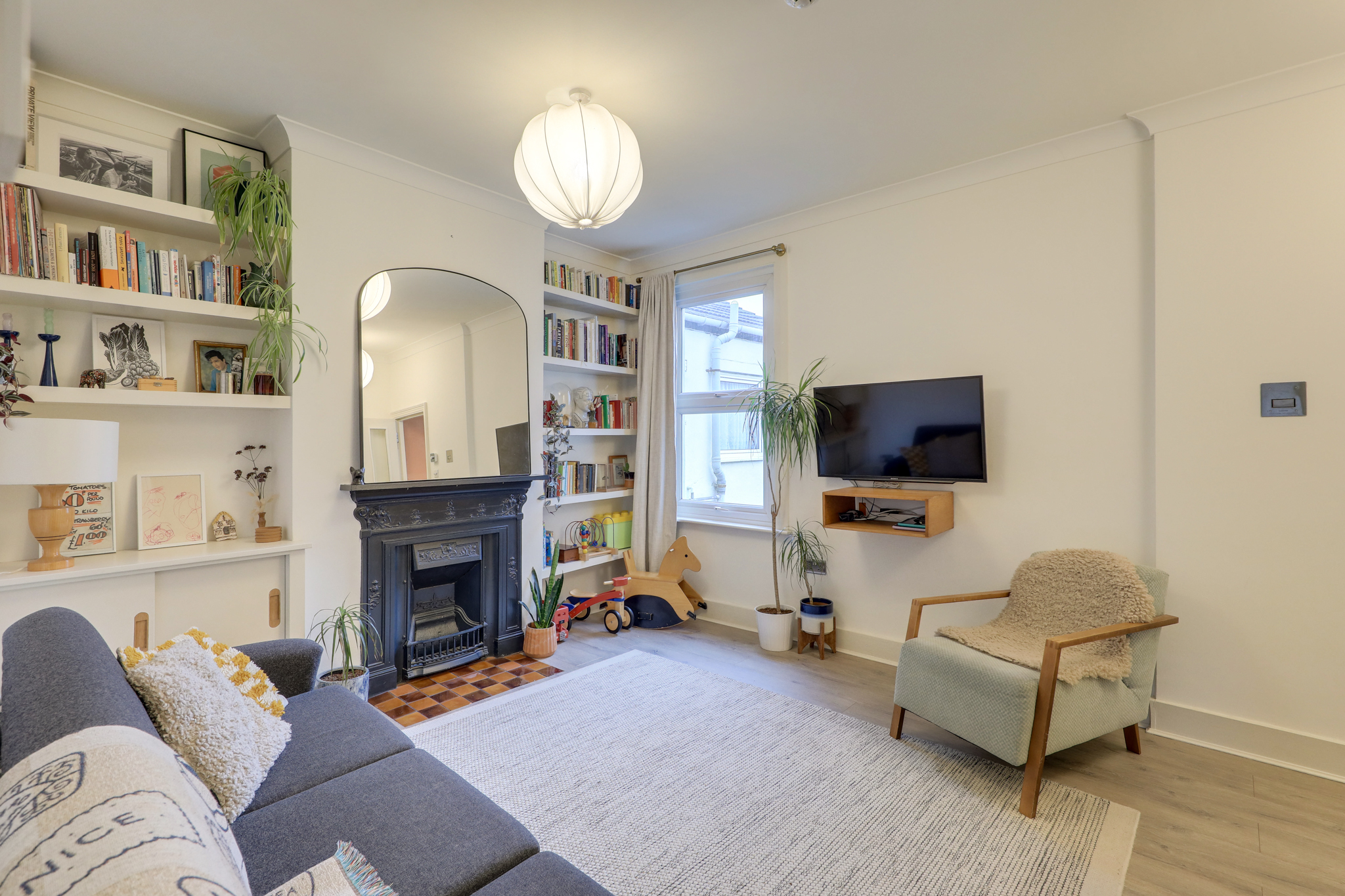 Accessed via its own private front door, the ground-floor entrance hall provides a practical space for coats and shoes. Upstairs, the first floor is arranged around a bright and airy living space, where the lounge features a charming feature fireplace and plenty of room to relax. To the rear, the contemporary kitchen-diner is fitted with sleek, modern units and integrated appliances, offering ample space for dining. From here, stairs lead directly down to a lovingly maintained rear garden, ideal for alfresco dining and summer lounging. This floor also accommodates two well-proportioned bedrooms and a modern family bathroom.