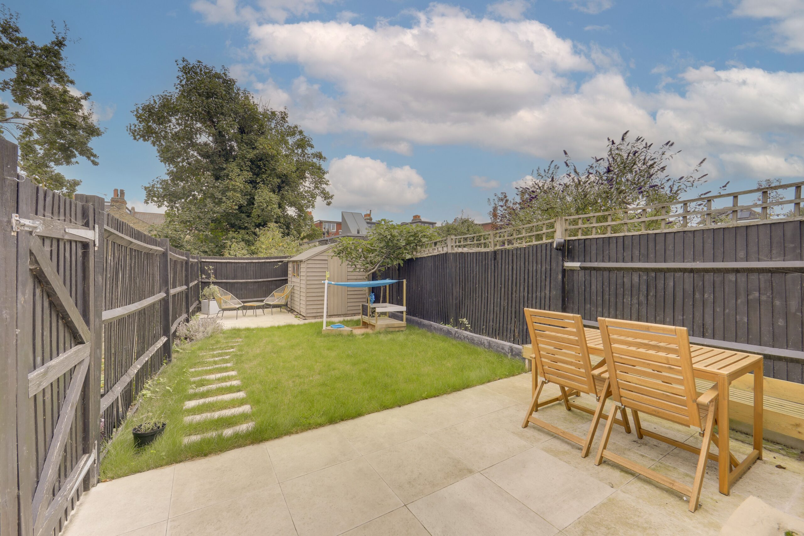 The private rear garden is a true highlight, offering a well-maintained lawn, a paved patio for outdoor dining, a secluded seating area, and practical touches including a garden shed for storage. Families will appreciate the dedicated children’s play area complete with a sandpit and shade sail, creating a safe and enjoyable environment for outdoor play. This delightful home combines the character of Victorian architecture with the functionality and comfort of modern living, making it an ideal choice for families and professionals alike. With its blend of spacious, light-filled interiors and superb outdoor space, this terraced house offers a rare opportunity to enjoy stylish living in a timeless setting.