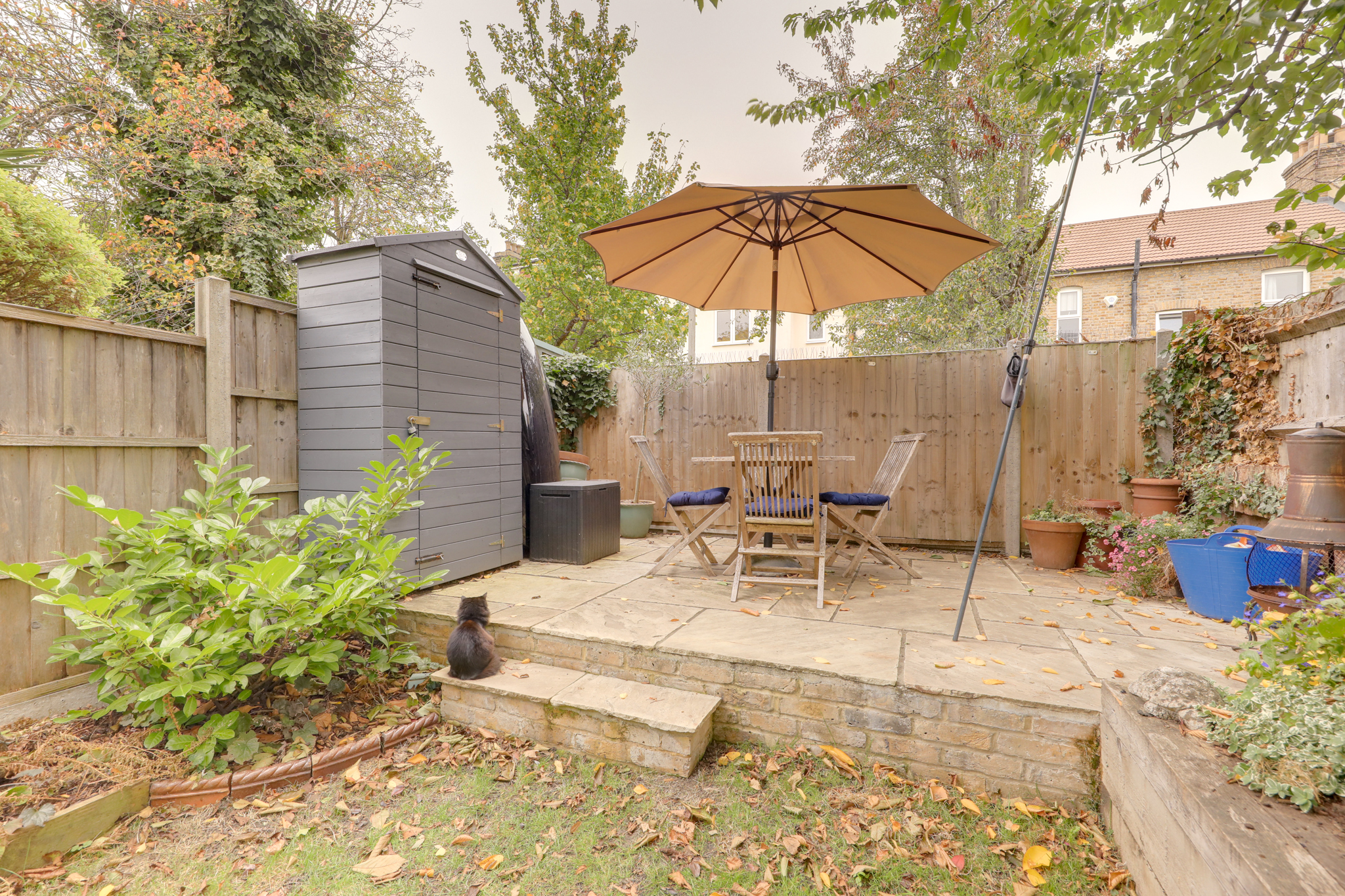 Inside, the spacious reception room features a bay window that fills the space with natural light and provides an elegant setting for relaxation or entertaining. The kitchen opens directly onto the private garden — a peaceful retreat with a front and rear seating areas and a lovingly maintained lawn, perfect for alfresco dining or unwinding outdoors. There are two well-proportioned double bedrooms, including a principal bedroom with built-in wardrobes, and a stylish, contemporary bathroom. Additional benefits include a spacious cellar, offering excellent storage, and off-street parking to the front.