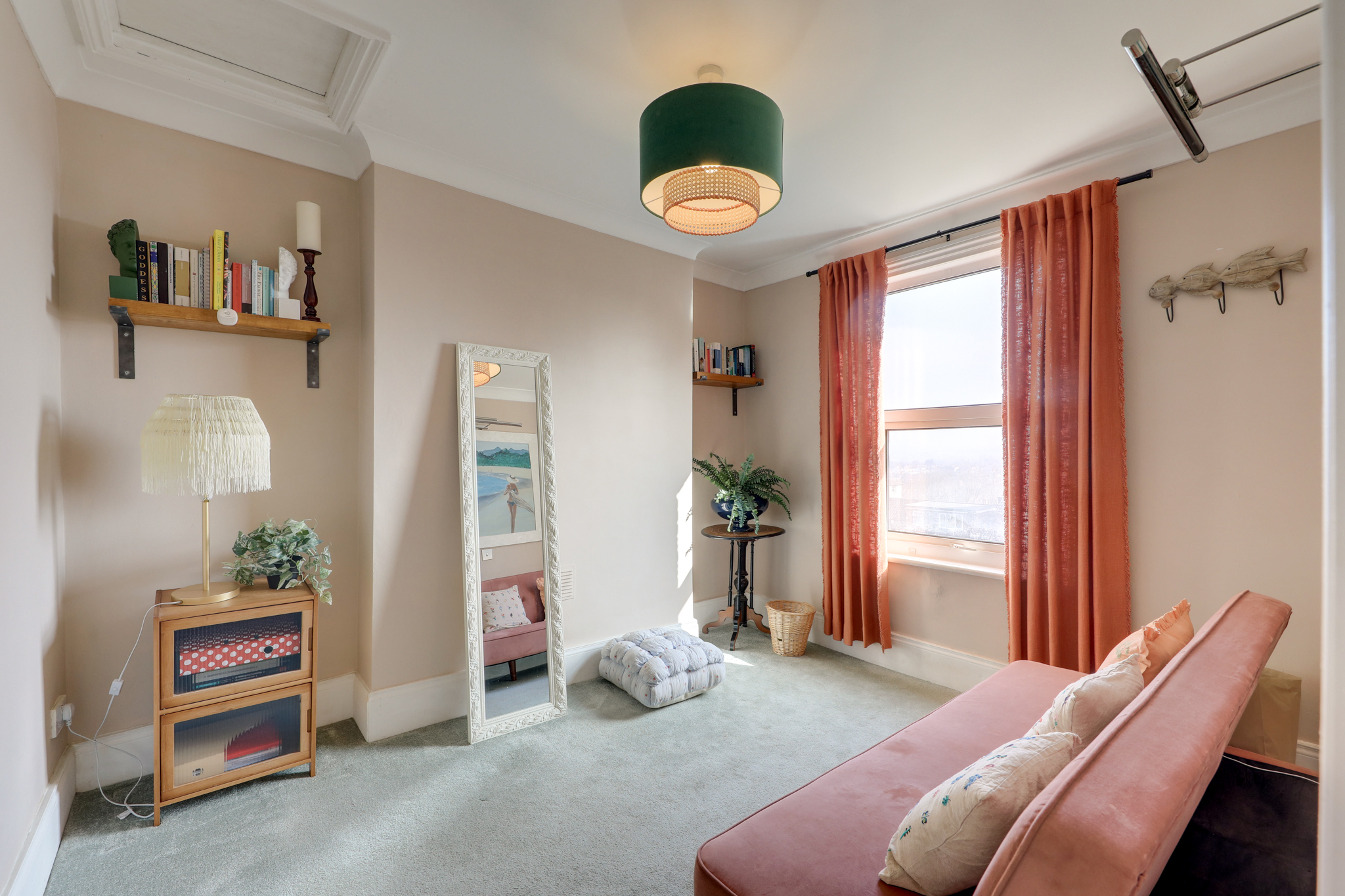 Double-glazed window, pendant ceiling light, loft access, column radiator, fitted carpet.