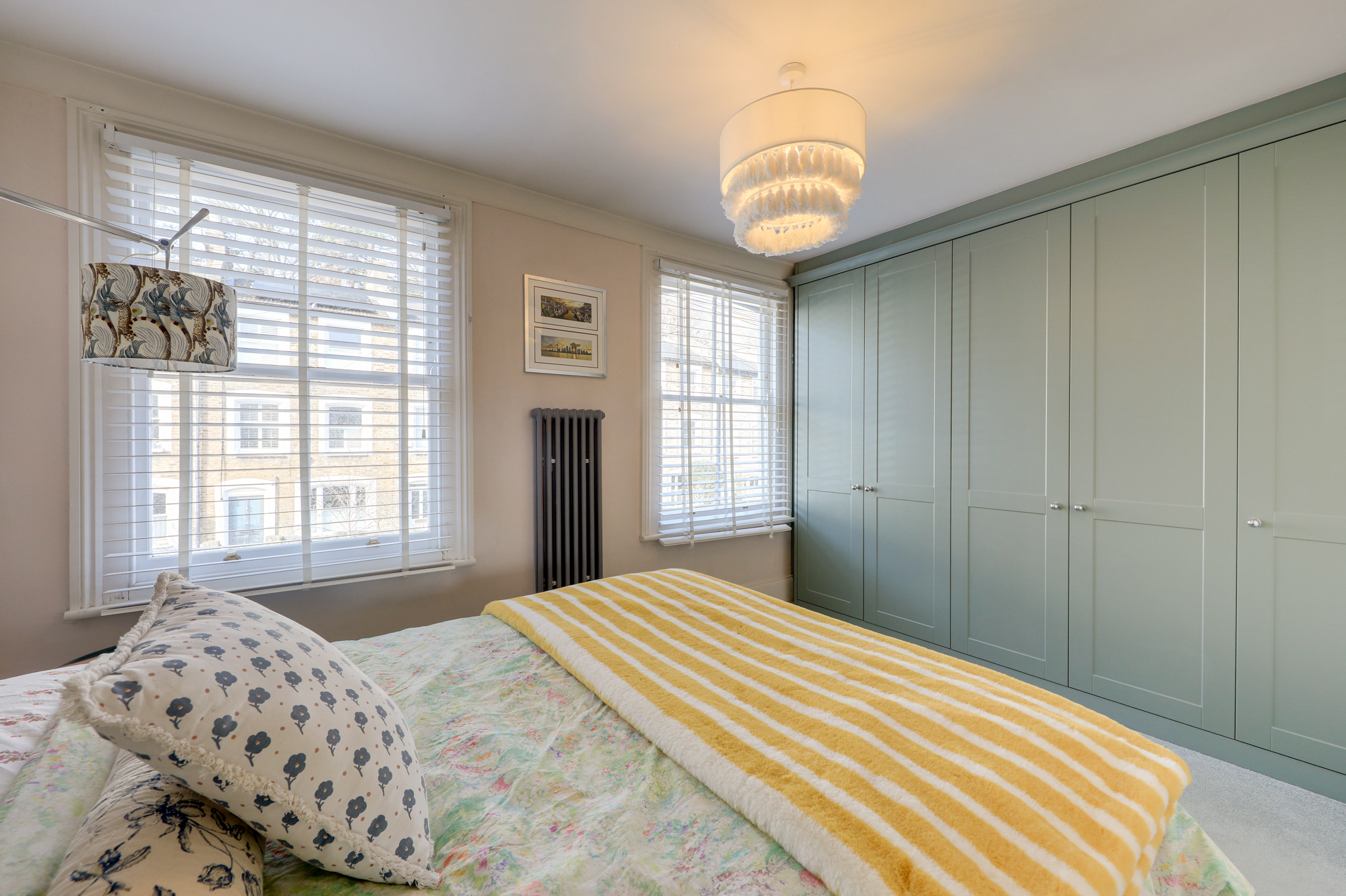 Sash windows, pendant ceiling light, built-in wardrobes, column radiator, fitted carpet.