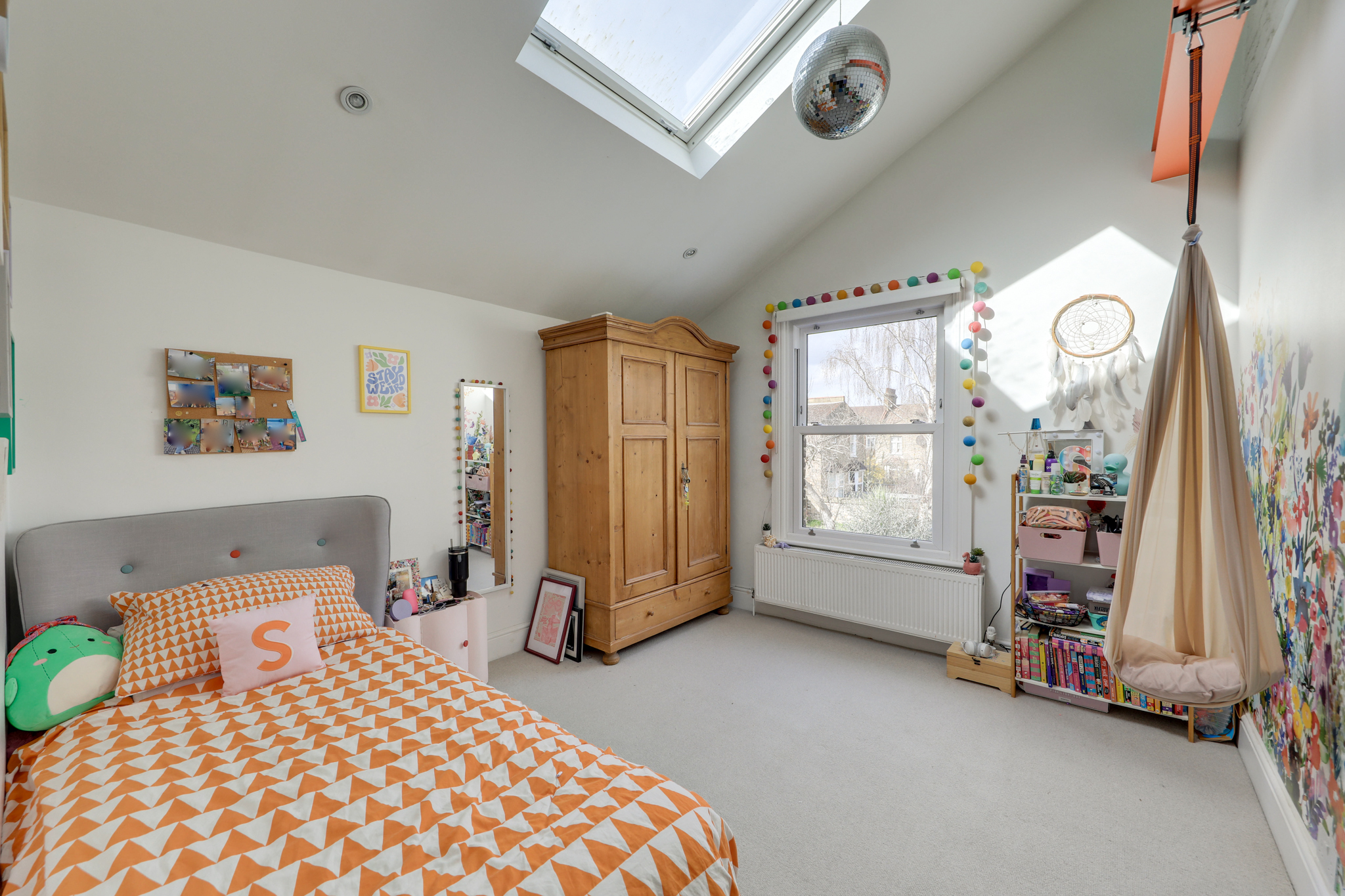 Double-glazed sash window, skylight, radiator, access to eaves storage, fitted carpet.