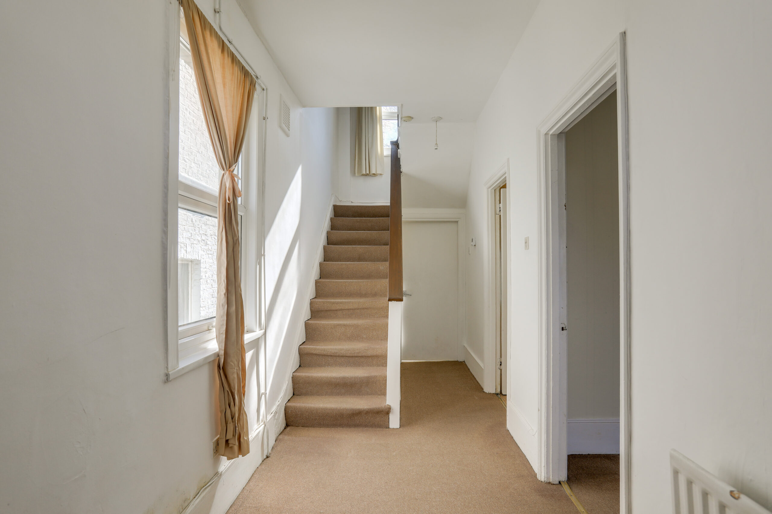 Window to rear, stairs with fitted carpet.