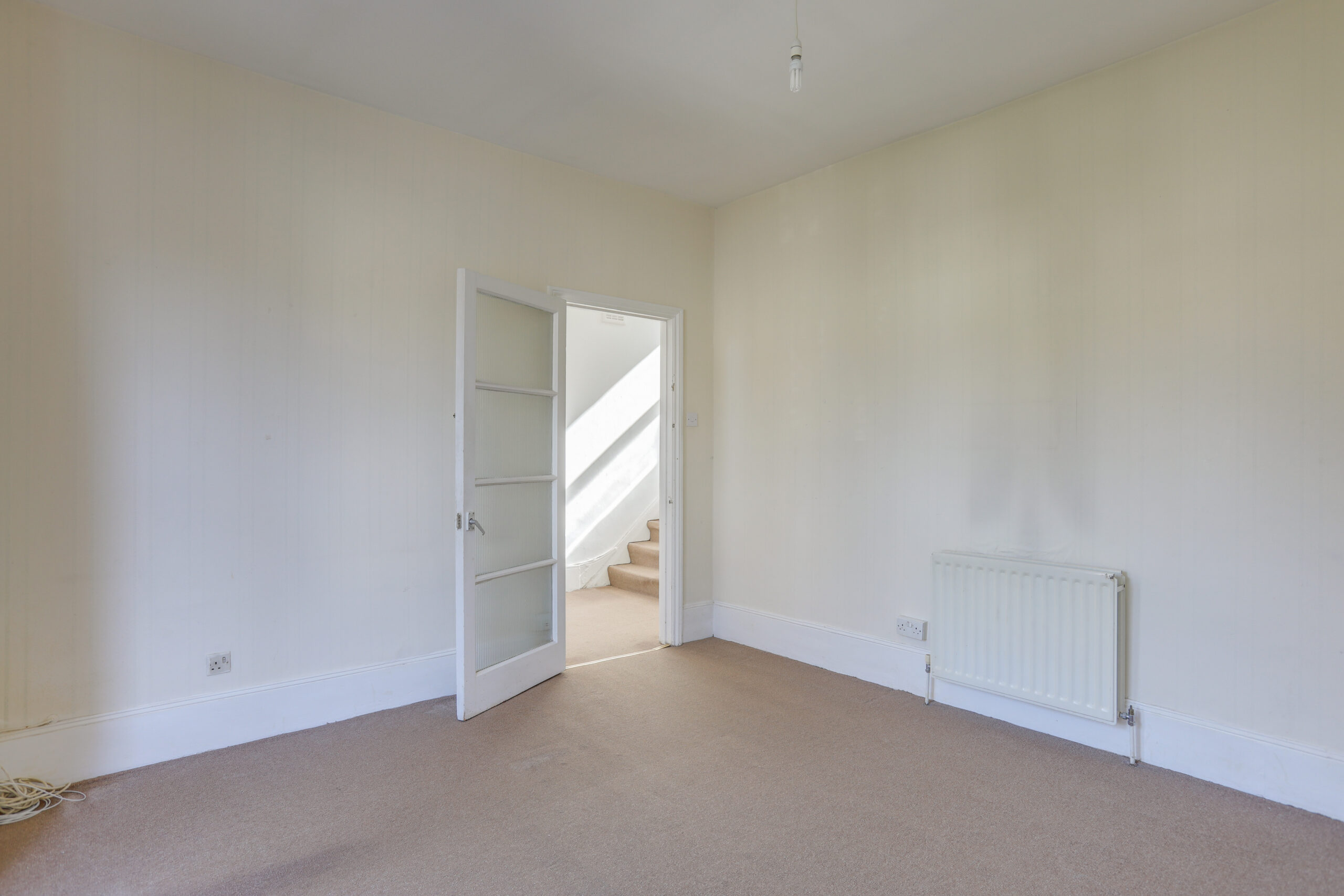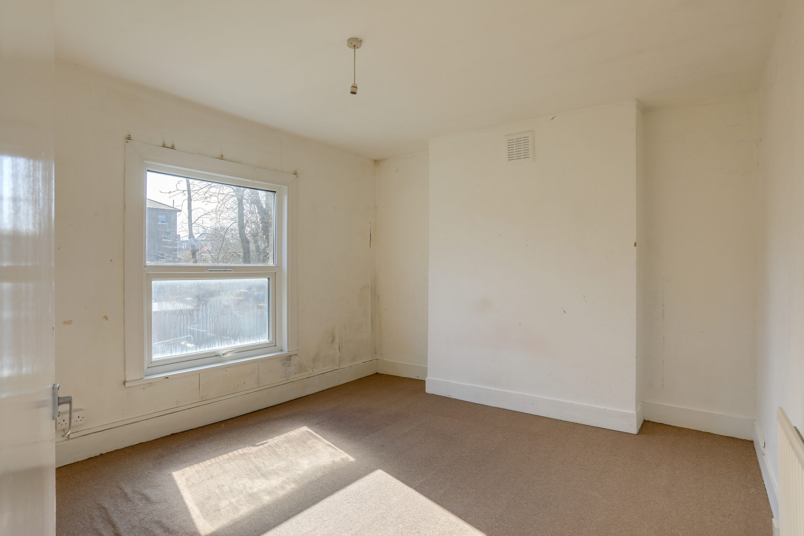 Window to the rear, carpet, radiator.