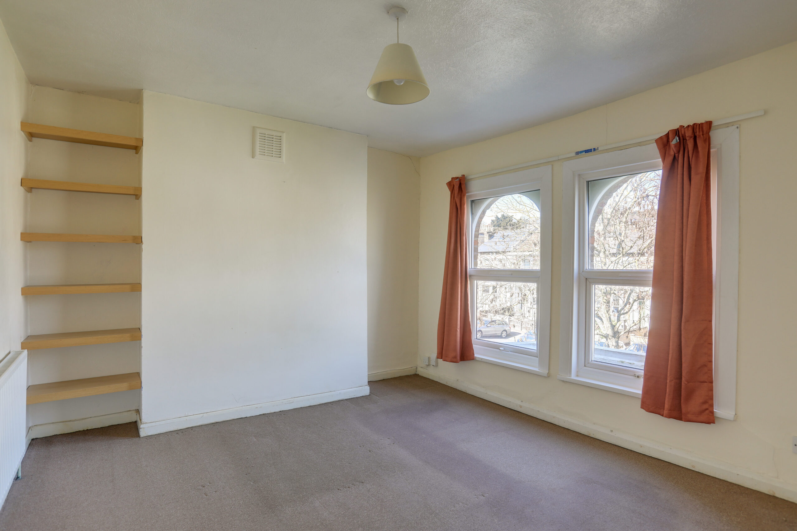 Bay window to front, carpet, radiator.