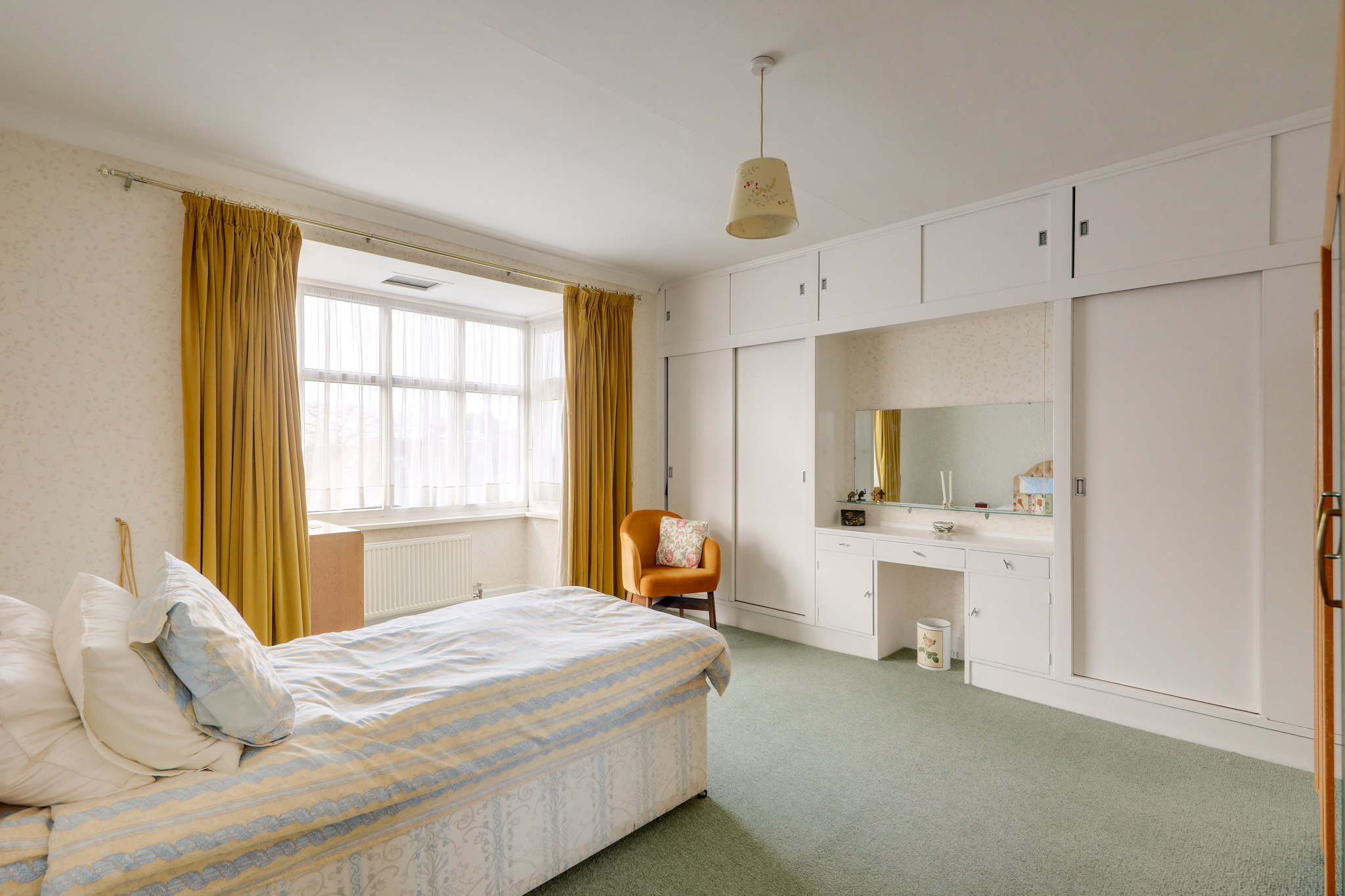 Double-glazed bay windows, pendant ceiling light, built-in wardrobes and vanity unit, radiator, fitted carpet.